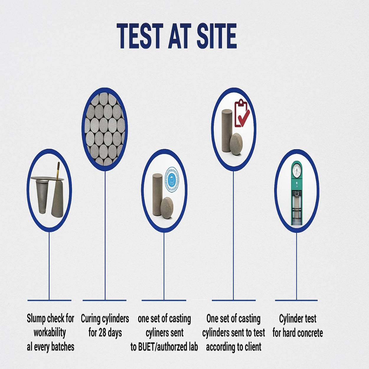 The concrete is cured in the curing tank for 28 days and then a set is sent to BUET lab for getting the supplied concrete strength. The test result is very important for the acceptance of on-site concrete work since it demonstrates the strength of the mix design.